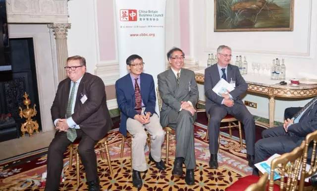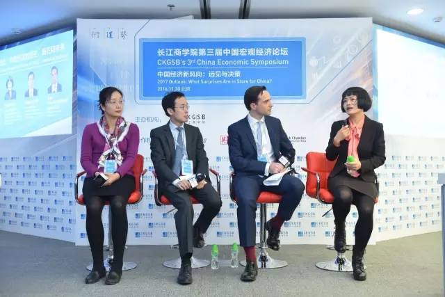 圖中從左至右嘉賓分別為:英中貿(mào)易協(xié)會(huì)總裁傅仲森,長(zhǎng)江商學(xué)院李偉教授,長(zhǎng)江商學(xué)院經(jīng)濟(jì)學(xué)教授楊瑞輝,英國《金融時(shí)報(bào)》副主編James Kynge。