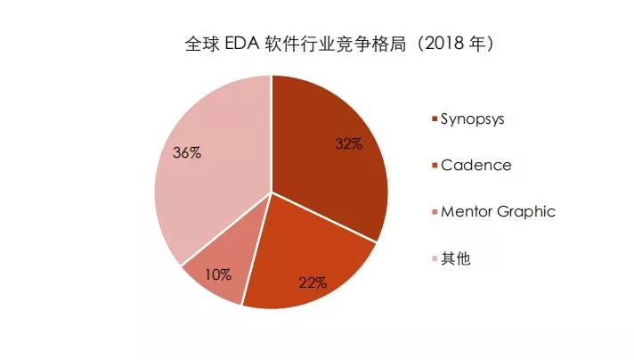 目前該行業存在著高度壟斷,海外三大EDA軟件廠商Synopsys、Cadence、Mentor占據了全球市場的64%,且壟斷了中國芯片設計95%以上的市場。