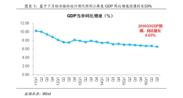 我们基于所监控的经济指标截至到8月底公布的最新数据对三季度GDP同比增速进行实时预测,预计GDP同比增速将放慢到6.53%,但这些数据主要更新到7月。随着财政政策的逐渐发力,8-9月的经济数据可能逐渐向好,我们将在9月底将这些数重新纳入模型以调整最新的GDP预测。