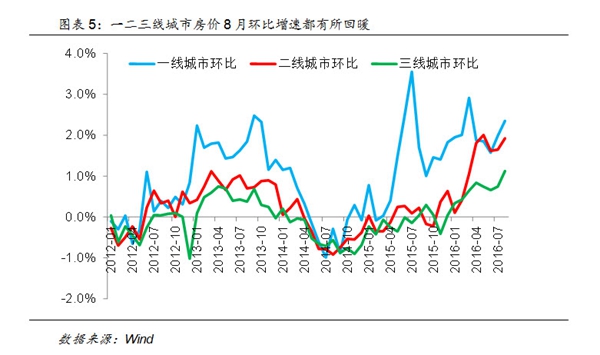 房地产市场在8月经历了一波回暖,一二三线城市房价在8月分别环比增长2.3%/1.9%/1.1%,这主要是由于8月下旬部分城市出现了楼市收紧的政策预期,导致部分需求开始提前消化。
